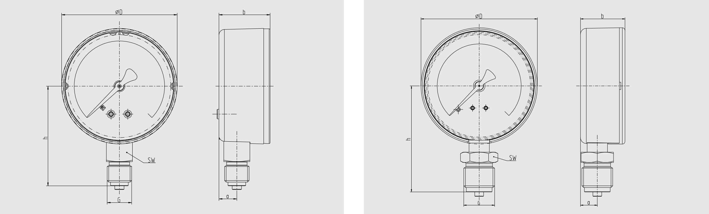 63mm Brass Tube Glycerin Pressure Vacuum Gauge Stainless Steel Case Images |